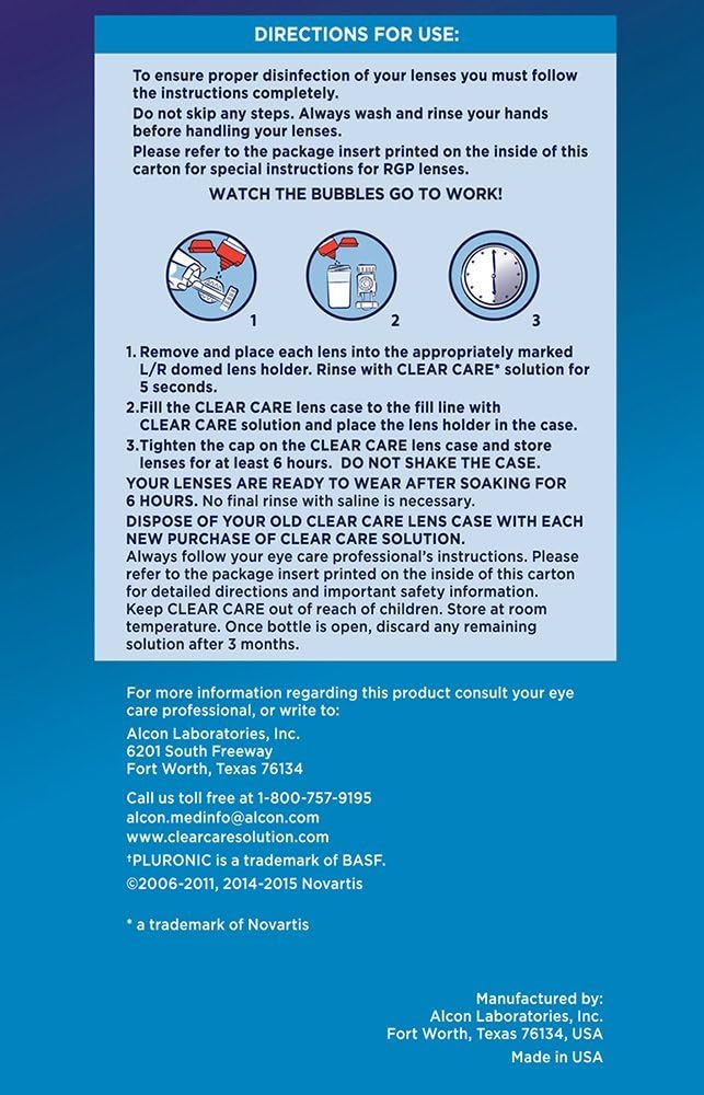 - Never put Clear Care Solution directly in or around your eyes. Follow instructions completely and do not skip any steps